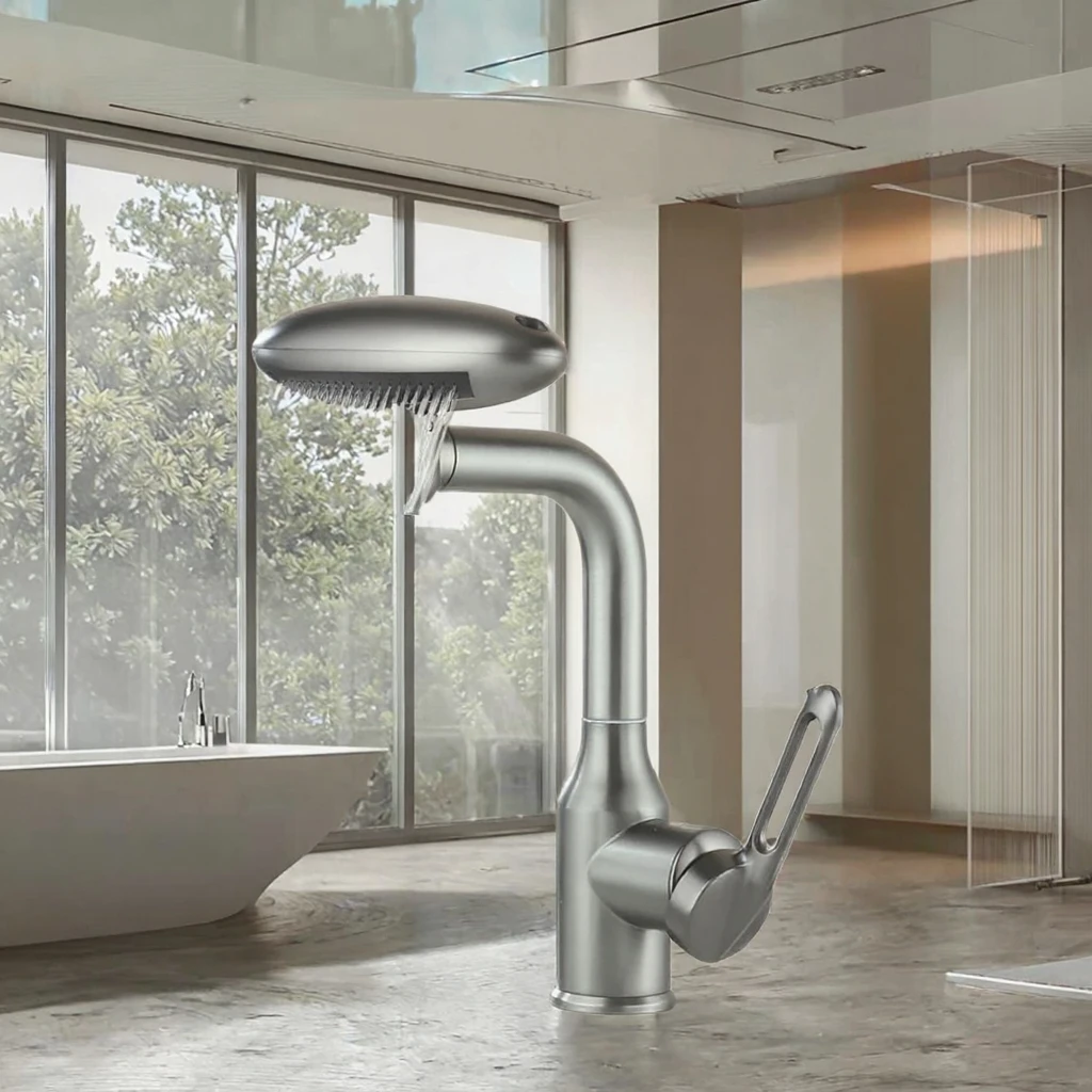 Su válvula de cerámica garantiza un control suave del agua y evita goteos, mientras que la boquilla extraíble tipo rociador facilita la limpieza y mejora la comodidad.